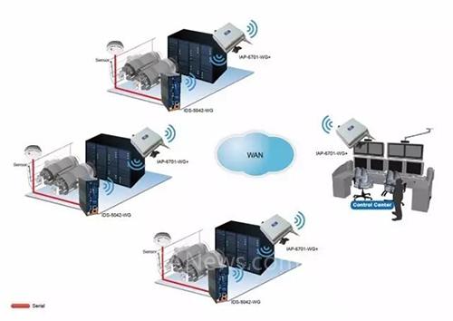 不仅如此,ORing在每个发动机试车台处安装一台IDS-5042-WG(此型号已停产,替换型号为IDS-1112)工业级无线串口服务器,通过户外分布安装的IAP-6701-WG+系列户外无线AP,最终将终端设备的数据通过无线网络传输至控制室。在不同测试站点的工作人员可以同时接收来自控制室的命令以及调试更改,以保持测试同步。而在控制室的工作人员可以实时监控测试进程,并立刻获得测试结果,以便随时进行必要的调整。