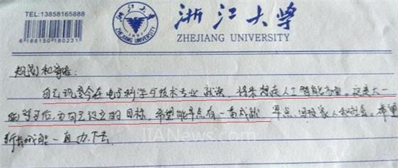 他说,“我是靠国家专项计划进的浙江大学,我想贫困也不是什么坏事,贫困的家境磨练了我的意志。‘穷且益坚’,我自己不会被生活击倒,在今后的学习生涯中也会更加用功。”