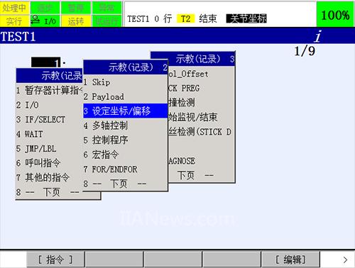 4.选择F1 [ 指令 ],选择 [ 设定坐标/偏移 ]