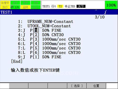 9.移动光标至运动点位,选择F5[位置 ]