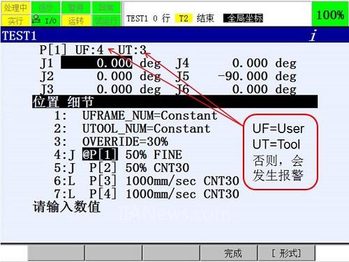 11.输入步骤10中查看的用户坐标系号和工具坐标系号