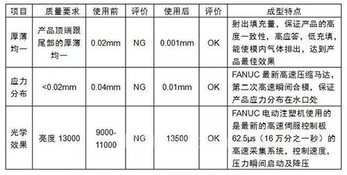 成型困难点:产品顶端和尾部的厚簿不均,发黄,白点,应力大及光学效果无法满足客户要求;