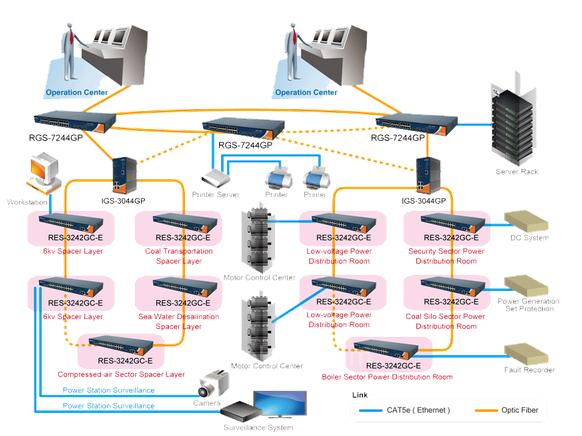 2010年初,ORing协助中国广州的火力发电厂布建厂区内的工业通讯网络。该网络系统采用ORing的RES-3242GC-E机架式网管型以太网交换机、IGS-3044GC工业级全千兆网管型交换机和RGS-7244GP全千兆网管型交换机,以满足该火力发电厂对于苛刻的工业环境和远距离数据传输的任务要求。