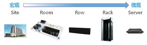 以管理层面而言,当我们站在不同的位阶,我们所关注的焦点也会不同,就数据中心而言可以分为五大位阶:由巨观到微观分别是站级(Site)、房间级(Room)、列级(Row)、机柜级(Rack)、服务器等级(Server),而管理的细腻程度端视微观的层级到达哪个位阶。举个例子,假设我们能够转移高负载的服务到其他机柜,那就不需要一味的加强空调的制冷能力。