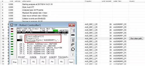 执行Clear path analysis,软件可以记录全部分析过程,机器人喷涂程序中会自动加入SetClearPath指令。