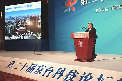 台达创办人暨荣誉董事长郑崇华,在”第20届京台科技论坛峰会”, 演讲”绿色商机 永续发展”