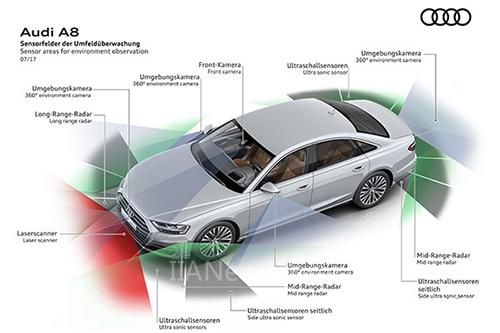 图1:奥迪A8自动驾驶技术采用多种传感器