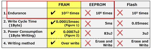 图5:FRAM相较E2PROM具有更优秀的耐久性