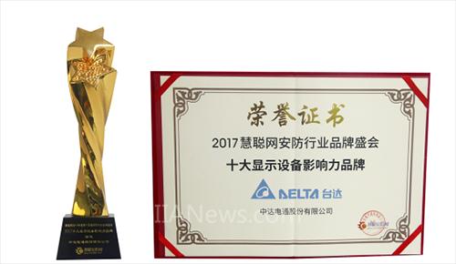 台达凭借全球领先的视讯产品与解决方案,蝉联“十大显示设备影响力品牌”大奖