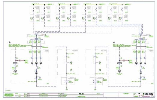 在整体鲅鱼圈烧结涉及到RA及国内产品主要有:RA-MV提供2台PF7000- 430A变频器、4台同步电机励磁系统、 2台6KV变频输出开关柜,1套高压柜切换控制系统;鞍山海汇提供了2套(4 台)6000KVA的干式变压器、2套风机仪控保护系统、4套风机振动监测系统 (ENTEK)、风机室一次检测仪表、2套 HMI、2套手自动切换和控制的操作台、 28套Point I/O(高压柜切换控制);为了满足生产调试和维护的需要,我们提供了1 套高压柜切换控制系统、大风机设备状态监测诊断管理系统。