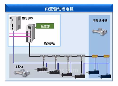 采用高放热结构,使驱动器部小型化,实现内置于伺服电机的结构。增加外部轴也不需要增加驱动器。