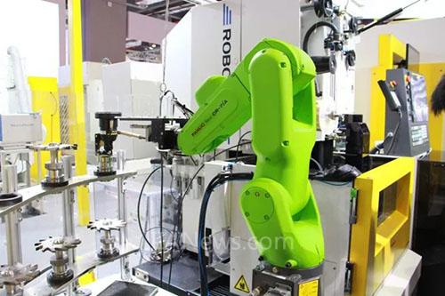 这款绿色机器人与发那科传统的黄色机器人的外观基本相同,但动作相对要慢一些,最快只有250mm/秒。同时,这款机器人的肢体不是金属铸件,而是软性材料。