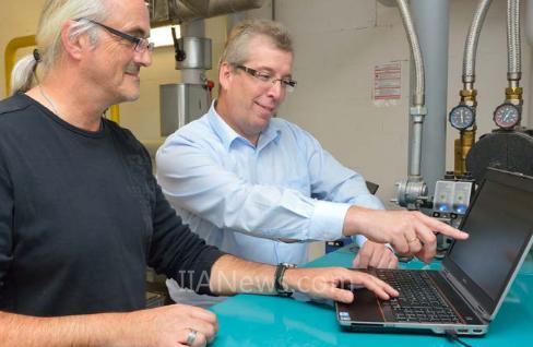 密切沟通:RheinEnergie AG的维修技术人员Udo Hamacher和WAGO的工业自动化系统顾问Martin Wei?müller。