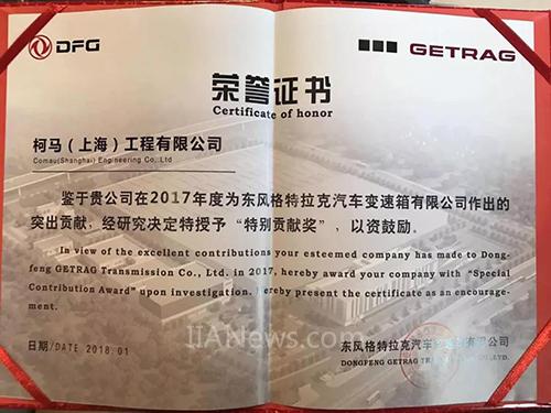 此次获奖是东风格特拉克对柯马中国的信任与肯定,意味着柯马中国已成为东风格特拉克的重要战略合作伙伴。今后,柯马也将继续以专业技术和精益的项目管理服务客户,实现合作共赢。