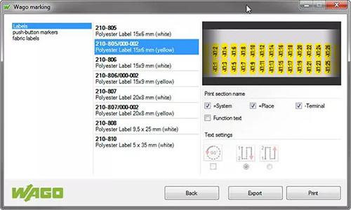 WAGO万可新版ePLAN界面使CAE工具的标记功能更加完善。现在用户不仅可打印接线端子标记,而且还可直接从ePLAN打印设备和线缆标记。