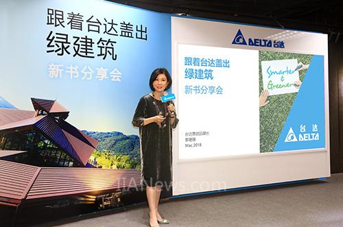 台达品牌长郭珊珊,介绍《跟着台达盖出绿建筑》书中,台达盖20多栋绿建筑的宝贵经验,希望带动更多人参与绿色行动,维护永续生存
