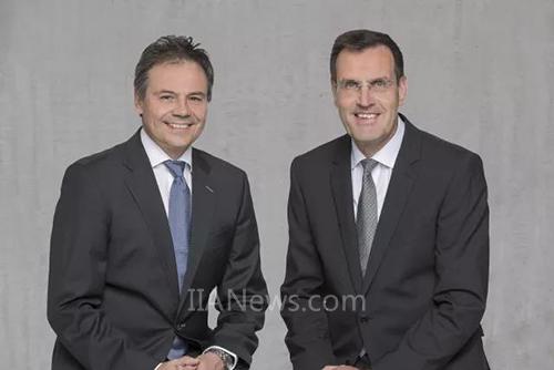 欧司朗集团特种照明事业部首席执行官Hans-Joachim Schwabe(左)和大陆集团车身与安全业务单元负责人Andreas Wolf(右)签订合资企业协议