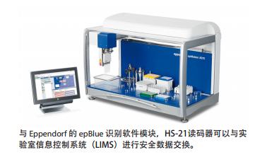 与 Eppendorf 的 epBlue 识别软件模块一起,HS-21读码器可以与实验室信息控制系统(LIMS)进行安全数据交换,简化了外部通讯。用户使用读码器还可以记录所有试剂管和微孔板上的条码。