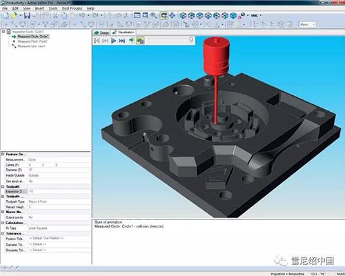 在动态模拟中,如果测头工件发生碰撞测头,界面会红色高亮提示。