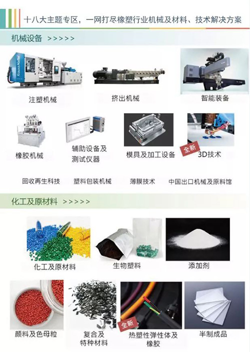 展会特设18大主题专区展示最新的橡塑原材料及超过4,200台尖端创新的机械设备,包括: