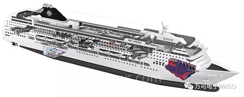 WAGO万可的WINSTA® MIDI接插式连接系统用于超大邮轮,具有以下优点: