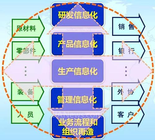 与此同时企业还有一个上游供应链和下游社会关系的问题,上游包括原材料、零部件、装备和人员招聘等,下游则与销售、银行、客户关系等相关联。这些属于企业的外部信息化问题。