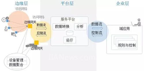 这个架构设计描述了工业互联网系统的内外三层结构。从边缘层,到平台层,再到企业层,如果我们把它看作是一个球体的话,外面就是设备端的边缘层,中间是平台层(工业互联网平台,主要指这一部分。当然现在也有将工业互联网平台泛化的趋势),最内层是企业层。在边缘层上主要是边缘的网关,采集各种各样的数据;送到平台层之后,平台层对数据做必要的处理和分析;分析完之后,再送达企业层,送到企业的应用系统。企业会根据不同的应用做不同的分析,做出判断和决策,将数据再往回传送到平台层和边缘层,直至送达企业内外联接的各个部门和单位。