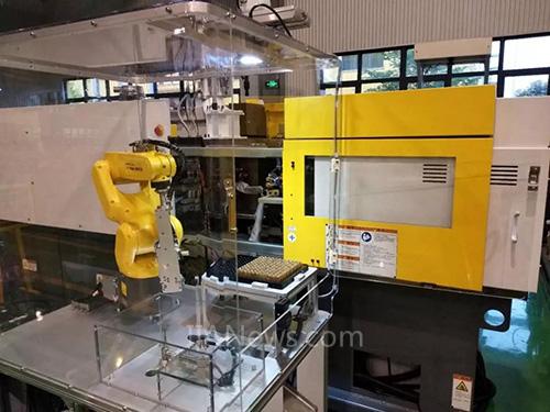 ● LR Mate 200iD机器人配合ROBOSHOT α-S50iA注塑机完成汽车零部件的嵌件注塑、取出和去毛刺自动化