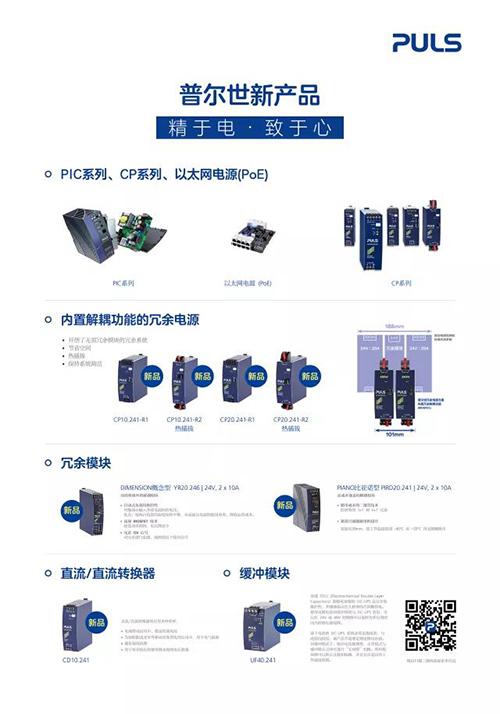 普尔世PIANO比亚诺PIC系列DIN导轨电源产品,转换效率再创新高的CP系列新品,以太网电源PoE,自带荣誉解耦模块的标准电源-R系列,带主动式均流的冗余模块,新品直流/直流转换器CD10,新品缓冲模块UF40等,为您的工控系统提供精致电力可靠芯。