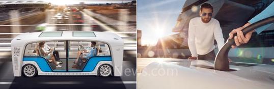 Rinspeed的“Snap”概念车采用浩亭的超快速充电技术(右)。