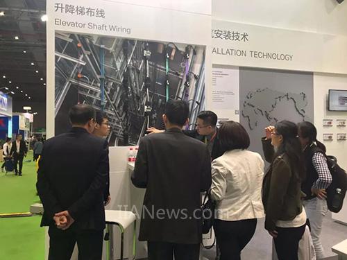 WAGO万可在本次电梯展的展台中心摆放的万可产品应用电梯系统模型得到了到访者的浓厚兴趣。