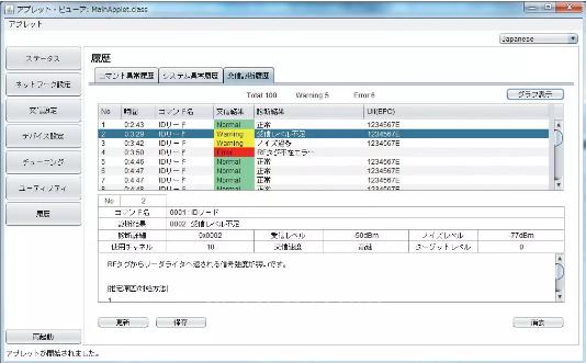 通过一览显示可确认过去8000条通信诊断履历。在通信状态不稳定时可显示推测原因和应对建议。