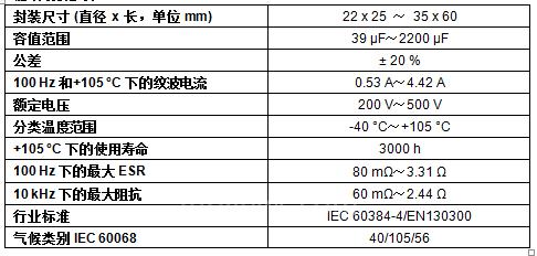 今天发布的电容器的纹波电流高达4.42A,这样设计者就可以使用更少的元器件,达到节省电路板空间,降低成本的目的。电容器在105℃下的使用寿命长达3000小时,如果电容器的环境温度是60℃,可以使要求苛刻的应用产品的使用寿命达到10年以上。