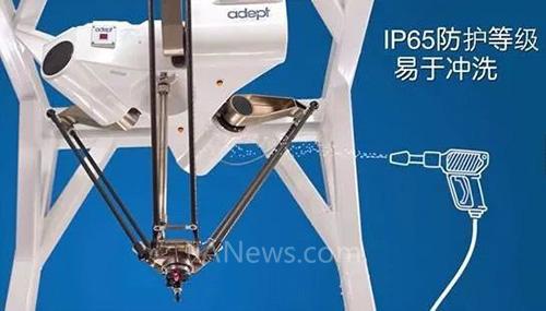 Hornet适用于食品、制药和日化等行业,是具有高负载、高速和高精度性能的并联机器人。伺服放大器和控制器完全嵌入机器人本身(驱控一体),减少接线、节省占地空间,且具有IP65防护等级。