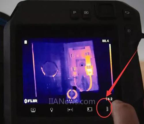 热像仪会调整温度水平和跨度至圆圈内的最高和最低温度场景
