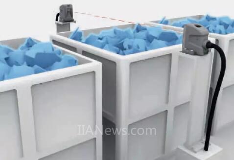 利用光电式传感器监测垃圾箱装满程度,确保垃圾箱不过满,且高温压铸材料不会落到传送带上。