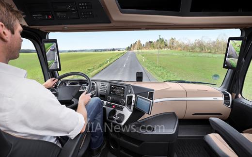 数字化后视镜:由博世与梅克朗公司针对后视镜共同开发的数字化后视镜摄像头系统将于2019年正式投产。该系统以图像传感器取代驾驶室外两侧的大后视镜,从而降低风阻,减少2%的油耗。摄像头传回的图像将实时显示在驾驶室的高分辨率监视器上。该系统会根据不同情况对显示器进行调整:当卡车在高速公路上行驶时,显示器视野将会调至更远;在城市中行驶时,视角将会拉大;在夜间行驶时,将增强图像对比度。借助博世的EasyFit摄像系统,现有货车车队也可加装数字后视镜。EasyFit系统基于四个超广角摄像头,能够360度全方位显示车辆周围情况。