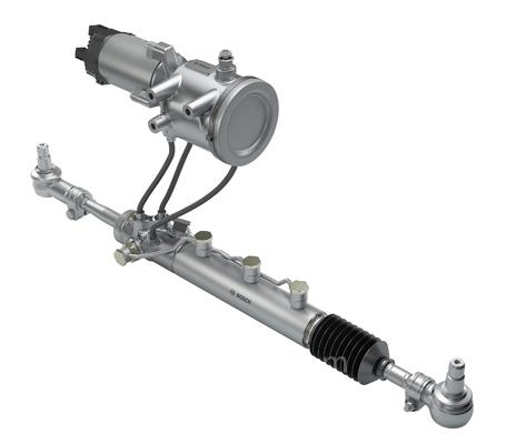 Servotwin转向系统:博世Servotwin电液转向系统提高了重型商用车的效率和便利性,它能够提供随速转向支持,比纯液压转向油耗更少。由于配备了电子接口,转向系统也为车道辅助及侧风补偿等驾驶员辅助功能提供保障,该系统有诸多应用领域,其中包括梅赛德斯奔驰公司的自动驾驶卡车Actros。