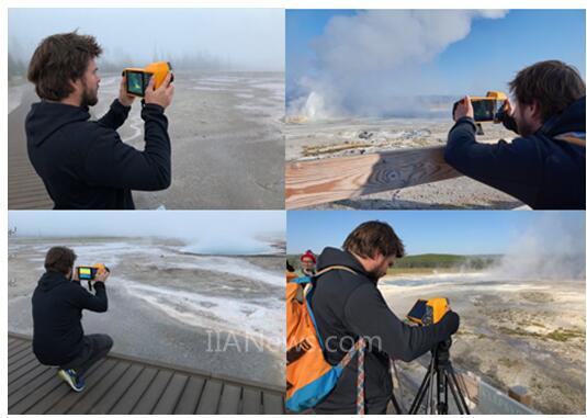 工作人员使用福禄克红外热像仪拍摄著名的老实泉在空中喷射的关键场景