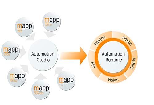 mapp的开发就是基于软件复用和组件技术,包括了大量的mappControl、mappMOTION等基础的自动化专业库,以及为行业所开发的mappPLASTIC、mappPackaging等,以及为了机器画面设计的mappVIEW、与生产运营相关的mappOEE、mappEnergy等大量丰富的软件组件,让机器配置与开发更为简单,而且涉及到控制、服务、运营维护各个环节的软件封装。