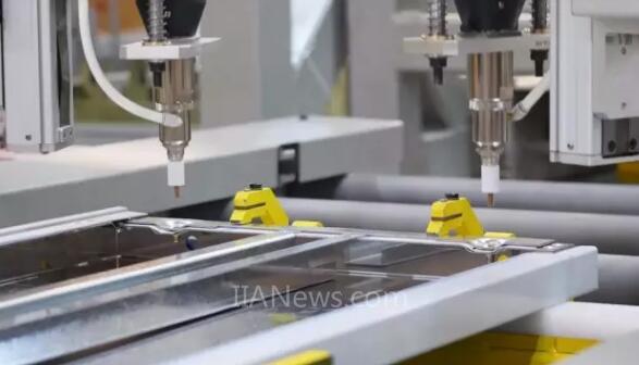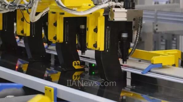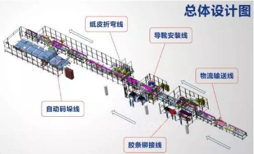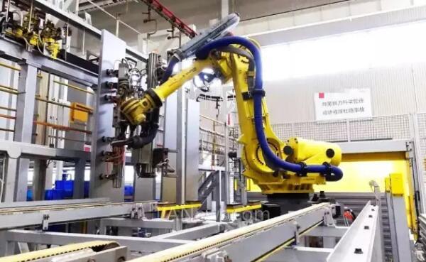 生产线集成了3台高柔性六轴机器人、德国GESIPA在线监控自动抽铆机、自动贴标机、自动打螺丝机和自动打包机等,集成程度在业界领先。