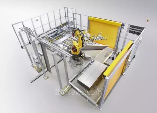 随后该电梯制造企业向瑞松科技引进了电梯层门板机器人自动化装配系统。系统由胶条自动铆接、导靴自动安装、纸皮抓取折痕、打包捆扎、自动码垛5个工位构成。