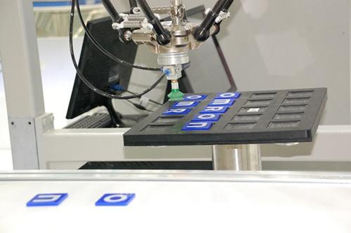 欧姆龙通过FH-5050视觉系统对电池极片位置数据的采集,并通过Cobra机器人的取放和纠偏动作,实现极片的高速高精度定位。同时,通过算法实现叠片台移动与缓存电机的高速同步,保证高速运动中隔膜张力的稳定。