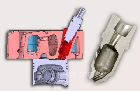 目前,涡流室燃烧系统已在汽车发动机上得到了广泛应用,但由于涡流室内部为异形的中空结构,中间大,两端出口小,若采用传统的砂型铸造方法,不但新品的开发周期长,产品一致性很难保证,也耗费了大量时间和金钱。