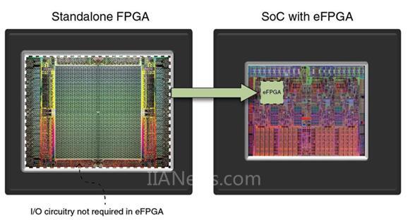 嵌入式可编程逻辑通过消除对面积大、功耗高的I / O电路的需求,来缩减了芯片的总面积