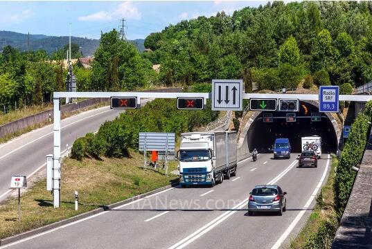 Cholfirst隧道入口处的标志架配有动态交通控制系统