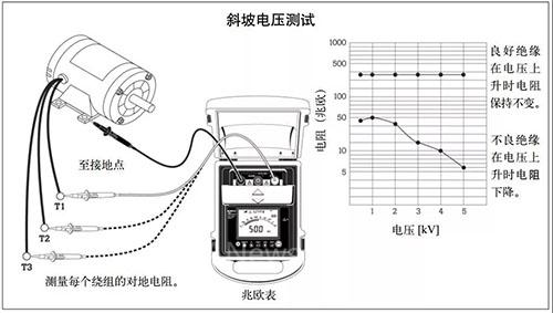 一个经验规则是:电阻度数一旦偏离25%,就说明绝缘不良,需要停止加压。