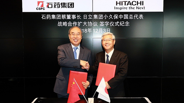 中国制药企业石药集团有限公司(董事长:蔡东晨/以下简称:石药集团)同株式会社日立制作所(执行役社长兼CEO:东原敏昭/以下简称:日立)中国总代表、日立(中国)有限公司(董事长:小久保宪一/以下简称,日立(中国))在东京会晤,并签署了进一步深化战略合作备忘录。