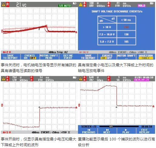 电压放电超过 15 V 且瞬变时间短于 50 纳秒时,表示放电可能会损坏轴承。但是,仅凭这一点还不足以确定对轴承的潜在损坏,因为还有许多其他因素会对此产生影响。