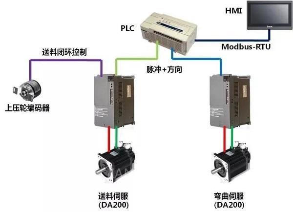 在钢筋加工的精度要求不断的提高下,英威腾针对弯箍机牵引轴目前提出了全闭环的概念。不经过中间机械传动,有效的避免 因为打滑而影响精度的问题,从而提高并保证了加工精度。通过一个I/O口切换信号就能实现两种模式的转换,遇到打滑材料时依靠增加的第二编码器做全闭环控制,平时也可以做位置控制,极大的简便了系统程序控制。